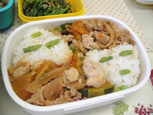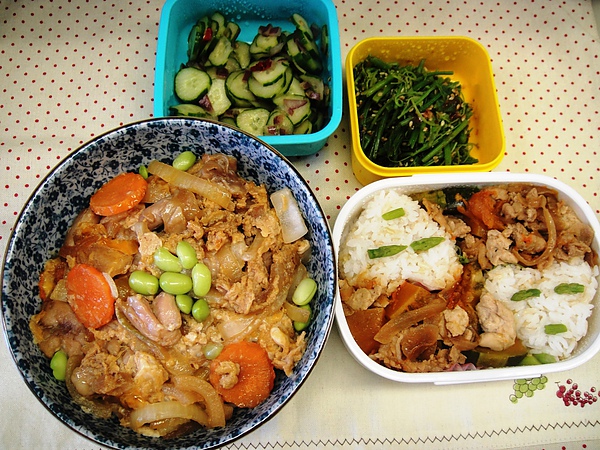 這幾天邦妮兒的娘親出國玩耍,我自告奮勇要幫她包便當,沒有什麼了不起的料理可傲其妻小,今天做了簡單的親子丼,但用的是黃金雞腿肉,有機洋蔥和有機茄紅蛋外加人妻的一顆心(啾),希望她吃得開心~
