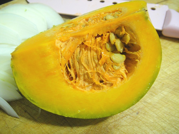 當季的南瓜,個頭不大,切開來裡面水份飽滿不說,還有一股很香濃的南瓜香味,吃起來也很甜,品質很好。正好秋季號新入手的Haru_mi季刊有介紹好幾個南瓜食譜,我要來試!