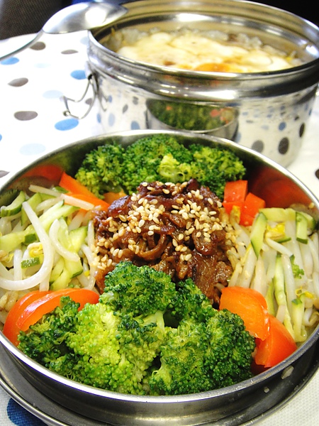 所以,今天想吃清淡些,就做了稀飯便當。但太清淡又沒胃口,所以又用一點辣椒加韓式辣醬做了很夠味的韓式辣炒豬肉,沒胃口的時候吃一點辣的反倒開胃了。