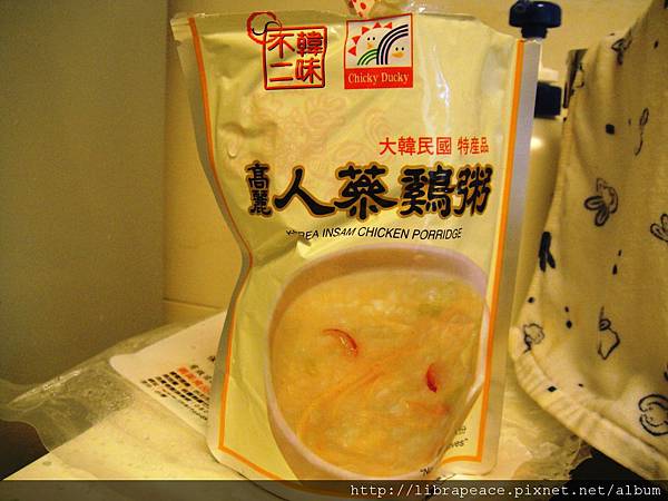 用韓國人蔘雞的料理包,再多加半杯米和適量的水(不然份量太少而且人蔘味太重),送進電鍋按下煮粥功能鍵,輕輕鬆鬆不費吹灰之力就有濃稠的人蔘雞粥~