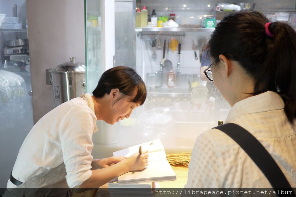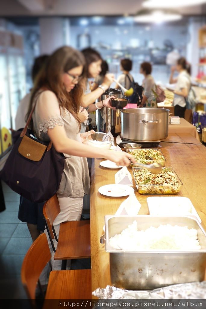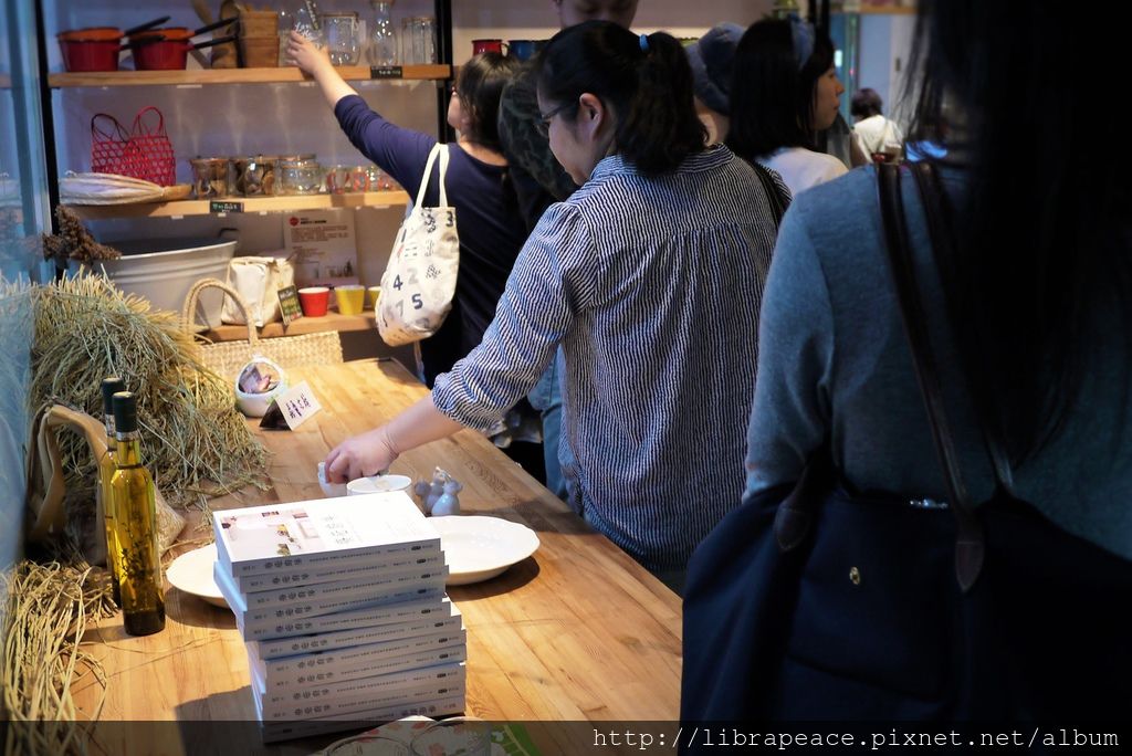 便當菜們全體都準備好了,要參加義賣的孩子們也陳列好了,我就去隔壁水牛書店的大長桌上,為義賣的《療癒廚房》簽名。看看時間,距離便當趴開張還算充裕,我就悠哉的喝著咖啡吃蛋糕,一邉簽著,就聽到工作人員很緊張的過來說,請快點兒出來吧,突然湧進了好多人哪!