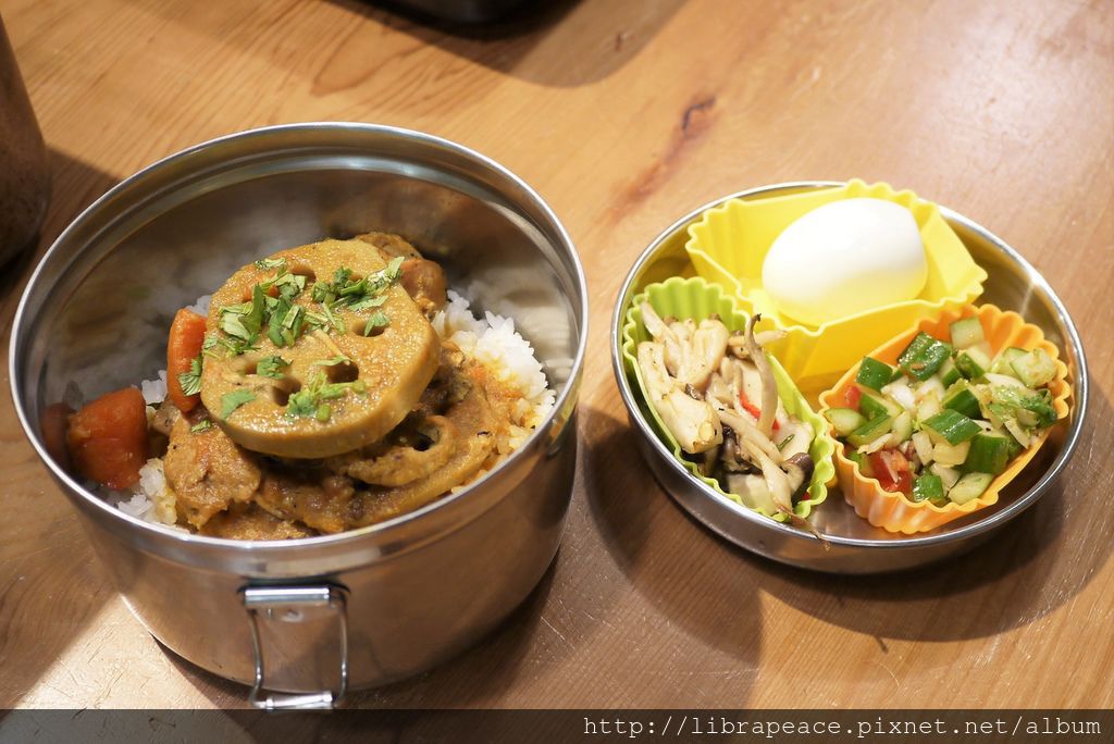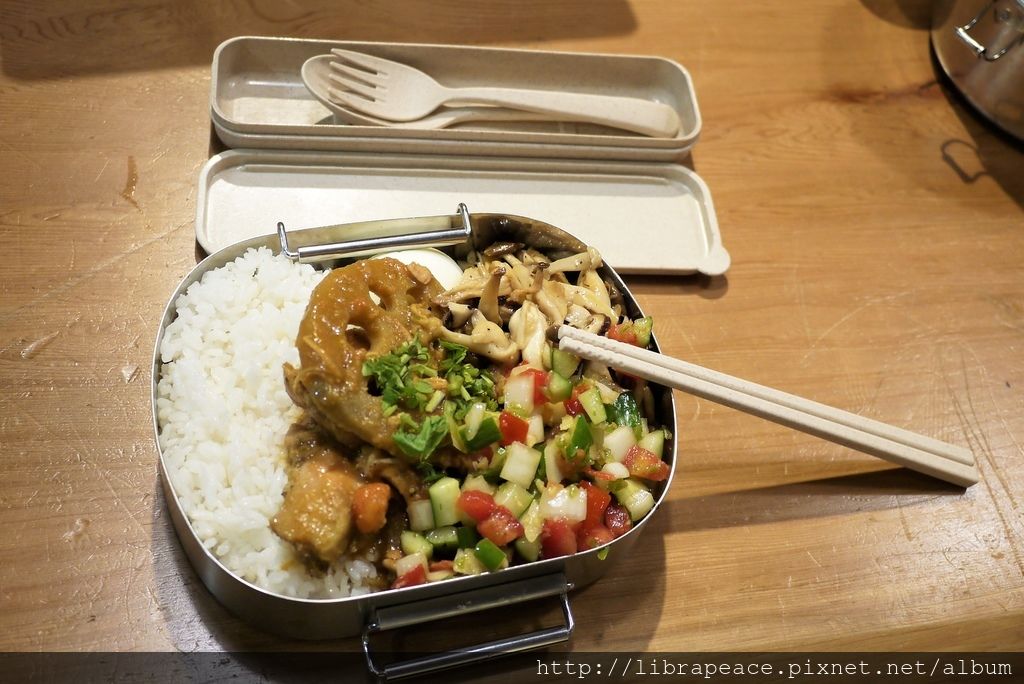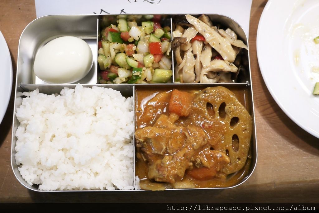 我為便當趴所設計的菜單,是發想自我大學時代最喜歡的一個便當,來自敝校女生宿舍餐廳裡的尼泊爾咖哩飯;我畢業後不久,宿舍餐廳也重新整修換廠商經營,原本的尼泊爾咖哩飯也跟著消失了,懷念的美味再無處可尋,我試著重現記憶裡的味道,希望分享給來購買便當的各位。